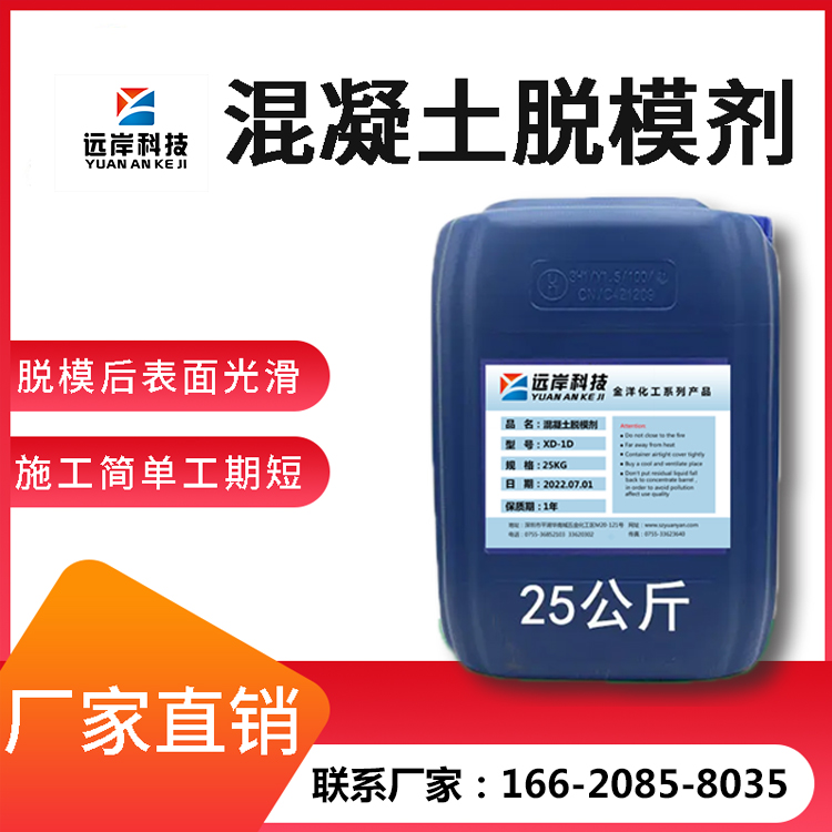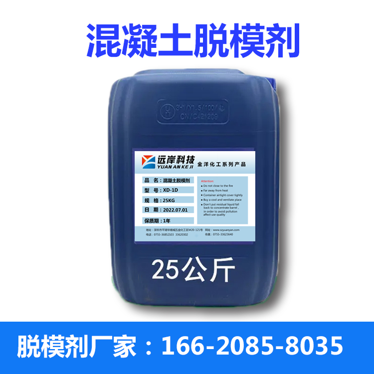 混凝土脱模剂是指在混凝土浇注前涂抹在施工用模板上的一种物质,以使浇注后模板不致粘在混凝土表面上、不易拆模,或影响混凝土表面的光洁度。其主要作用为在模板与混凝土表面形成一层膜将两者隔离开故又称隔离剂。