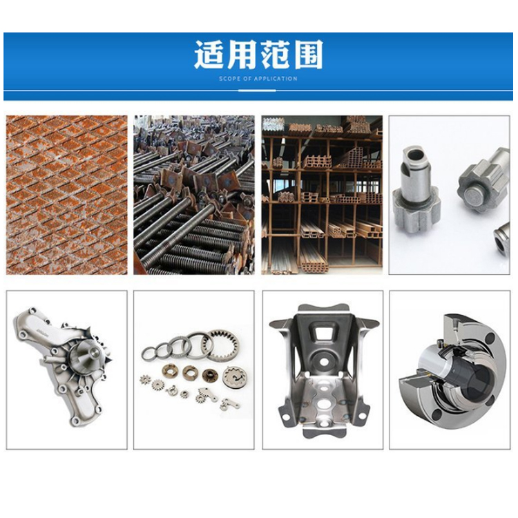 3、适用于铸铁、碳钢、汝铁硼磁铁、模具钢等各类易生锈含铁材质;
