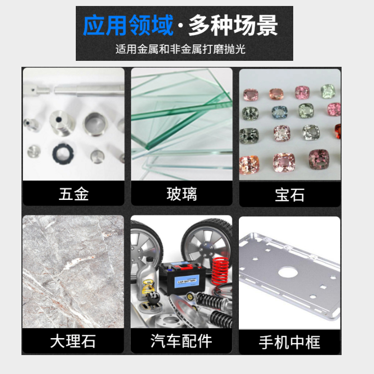 不锈钢、铁、铜、钛、铝、合金及其他金属产品的抛光。